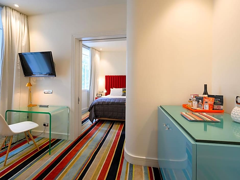 Bathrooms features both a shower and a bath, a hairdryer, underfloor heating, and velvet/toweling robes. All suites include a DVD player, radio and a flat-screen TV in both the bedroom and the living area.